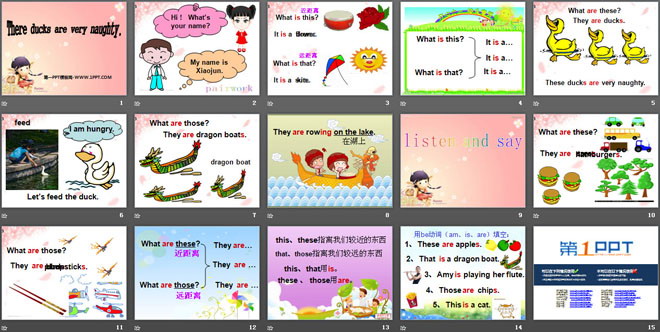 关键词:《These ducks are very naughty!》教学课件,外研版一起点三年级上册英语课件,三年级英语幻灯片课件下载,《These ducks are very naughty!》PPT课件下载,.ppt格式
