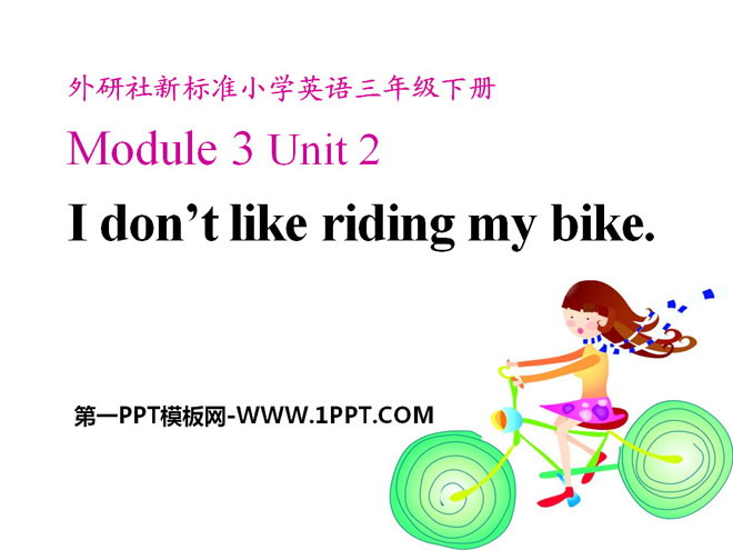 关键词:《I don't like riding my bike》教学课件,外研版三起点三年级下册英语课件,三年级英语幻灯片课件下载,《I don't like riding my bike》PPT课件下载,.ppt格式
