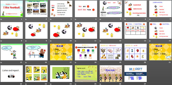 关键词:《I like football》教学课件,外研版三起点三年级下册英语课件,三年级英语幻灯片课件下载,《I like football》PPT课件下载,.ppt格式