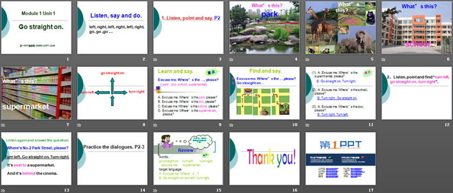 关键词:《Go straight on》教学课件,外研版三起点四年级上册英语课件,四年级英语幻灯片课件下载,《Go straight on》PPT课件下载,.ppt格式