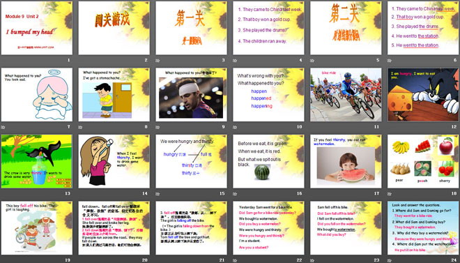 关键词:《I bumped my head》教学课件,外研版一起点四年级上册英语课件,四年级英语幻灯片课件下载,《I bumped my head》PPT课件下载,.ppt格式