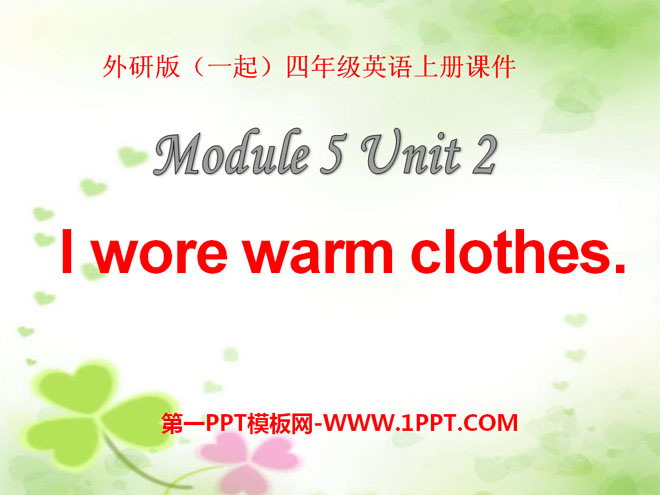 关键词:《I wore warm clothes》教学课件,外研版一起点四年级上册英语课件,四年级英语幻灯片课件下载,《I wore warm clothes》PPT课件下载,.ppt格式