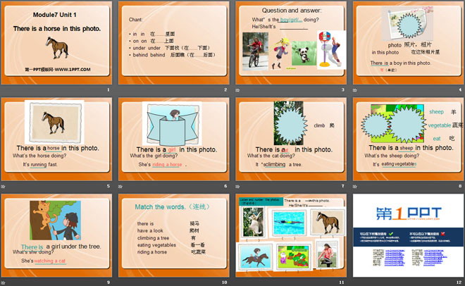 关键词:《There is a horse in this photo》教学课件,外研版三起点四年级上册英语课件,四年级英语幻灯片课件下载,《There is a horse in this photo》PPT课件下载,.ppt格式
