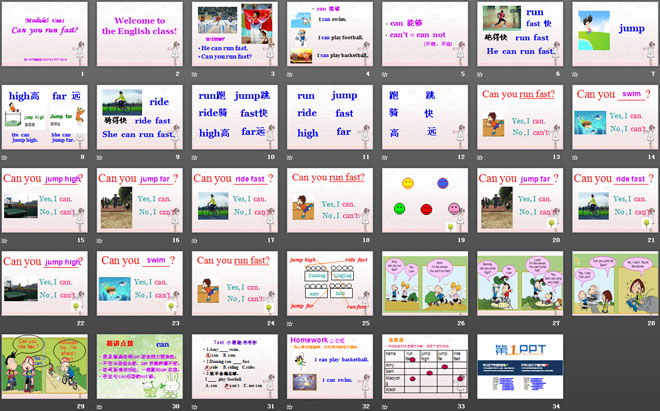 关键词:《Can you ran fast?》教学课件,外研版三起点四年级上册英语课件,四年级英语幻灯片课件下载,《Can you ran fast?》PPT课件下载,.ppt格式