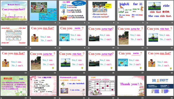 关键词:《Can you ran fast?》教学课件,外研版三起点四年级上册英语课件,四年级英语幻灯片课件下载,《Can you ran fast?》PPT课件下载,.ppt格式