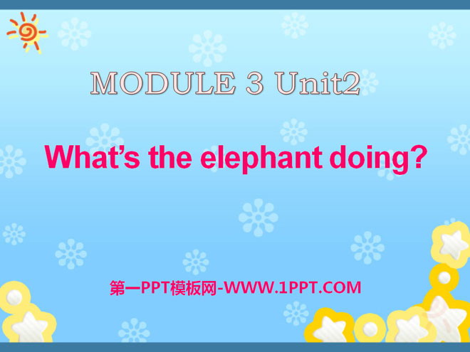 关键词:《What's the elephant doing?》教学课件,外研版三起点四年级上册英语课件,四年级英语幻灯片课件下载,《What's the elephant doing?》PPT课件下载,.ppt格式