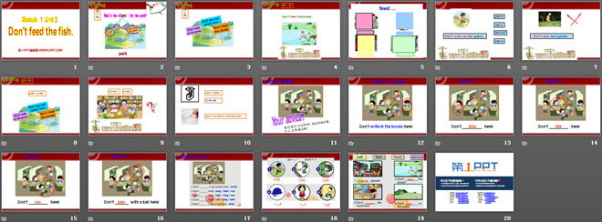 关键词:《Don't feed the fish》教学课件,外研版一起点四年级下册英语课件,四年级英语幻灯片课件下载,《Don't feed the fish》PPT课件下载,.ppt格式
