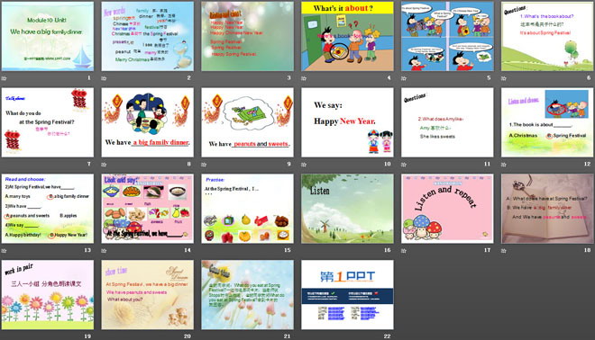 关键词:《We have a big family dinner》教学课件,外研版三起点四年级上册英语课件,四年级英语幻灯片课件下载,《We have a big family dinner》PPT课件下载,.ppt格式