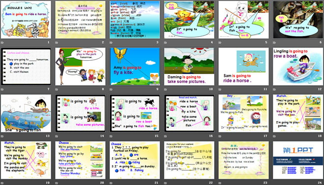 关键词:《Sam is going to ride horse》教学课件,外研版三起点四年级上册英语课件,四年级英语幻灯片课件下载,《Sam is going to ride horse》PPT课件下载,.ppt格式
