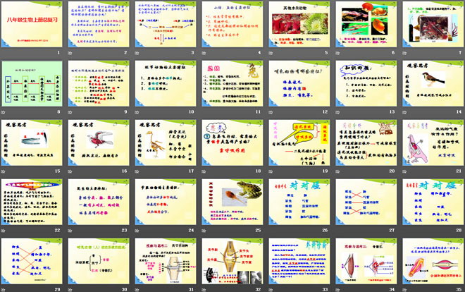 关键词:八年级生物上册总复习教学课件,人教版八年级上册生物PPT课件下载,八年级生物幻灯片课件下载,八年级生物上册总复习PPT课件下载,.PPT格式;