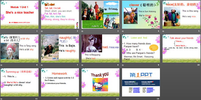 关键词:《She's a nice teacher》教学课件,外研版三起点四年级下册英语课件,四年级英语幻灯片课件下载,《She's a nice teacher》PPT课件下载,.ppt格式