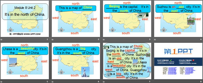 关键词:《It's in the north of china》教学课件,外研版一起点四年级下册英语课件,四年级英语幻灯片课件下载,《It's in the north of china》PPT课件下载,.ppt格式