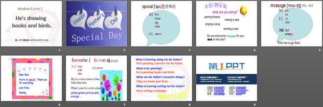 关键词:《He's drawing books and birds》教学课件,外研版一起点四年级下册英语课件,四年级英语幻灯片课件下载,《He's drawing books and birds》PPT课件下载,.ppt格式