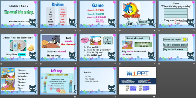 关键词:《She went into a shop》教学课件,外研版一起点四年级下册英语课件,四年级英语幻灯片课件下载,《She went into a shop》PPT课件下载,.ppt格式
