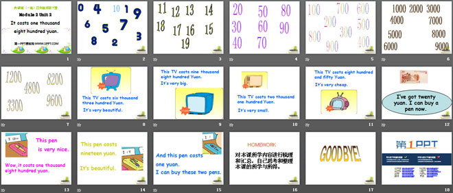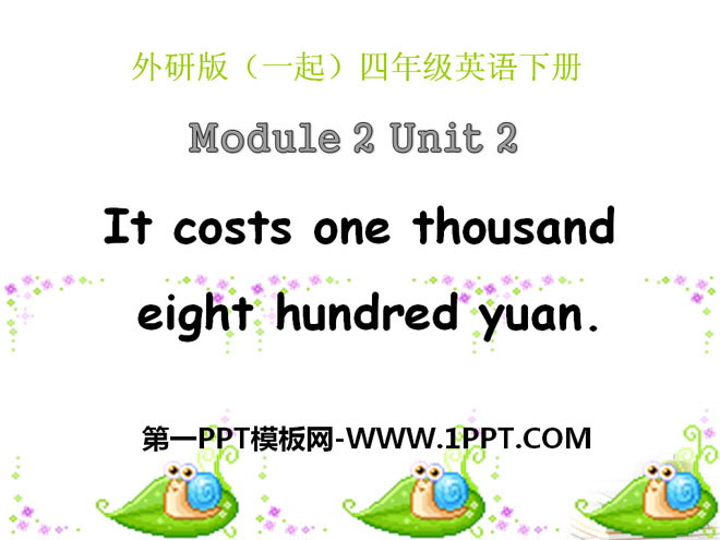 关键词:《It costs one thousand eight hundred yuan》教学课件,外研版一起点四年级下册英语课件,四年级英语幻灯片课件下载,《It costs one thousand eight hundred yuan》PPT课件下载,.ppt格式