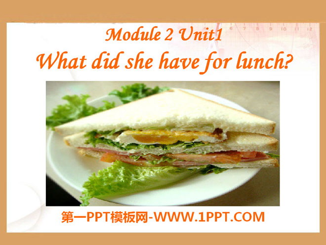 关键词:《What did she have for lunch?》教学课件,外研版一起点五年级下册英语课件,五年级英语幻灯片课件下载,《What did she have for lunch?》PPT课件下载,.ppt格式