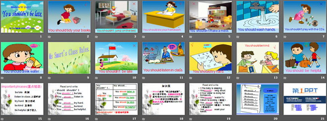 关键词:《You shouldn't be late》教学课件,外研版一起点五年级上册英语课件,五年级英语幻灯片课件下载,《You shouldn't be late》PPT课件下载,.ppt格式