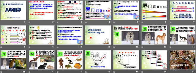 关键词:根据生物的特征进行分类教学课件,从种到界教学课件,人教版八年级上册生物PPT课件下载,八年级生物幻灯片课件下载,根据生物的特征进行分类PPT课件下载,从种到界PPT课件下载,.PPT格式;