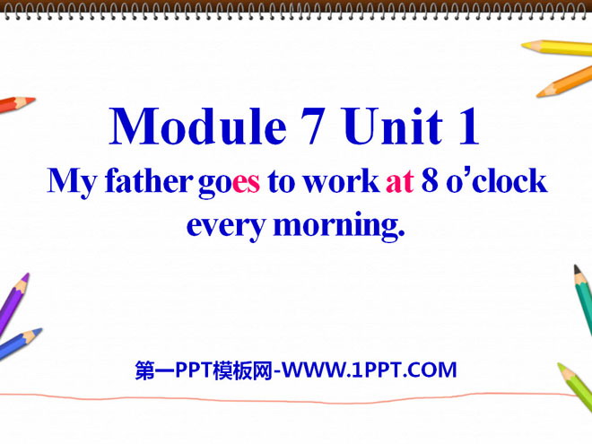 关键词:《My father goes to work at 8 o'clock every morning》教学课件,外研版一起点五年级下册英语课件,五年级英语幻灯片课件下载,《My father goes to work at 8 o'clock every morning》PPT课件下载,.ppt格式