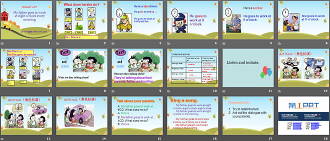 《My father goes to work at 8 o'clock every morning》PPT课件5