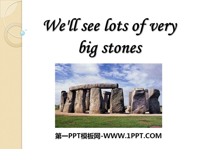 关键词:《We'll see lots of very big stones》教学课件,外研版一起点五年级下册英语课件,五年级英语幻灯片课件下载,《We'll see lots of very big stones》PPT课件下载,.ppt格式