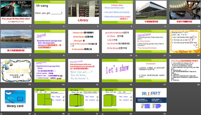 关键词:《Have you got the Harry Potter videos?》教学课件,外研版一起点五年级下册英语课件,五年级英语幻灯片课件下载,《Have you got the Harry Potter videos?》PPT课件下载,.ppt格式