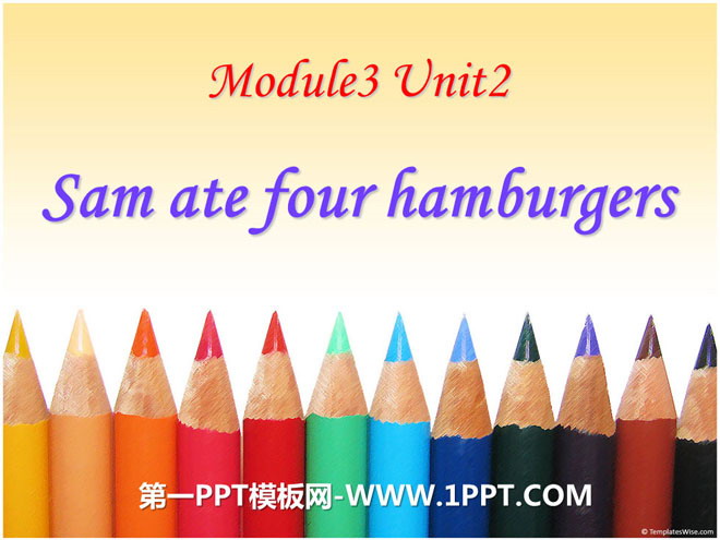 关键词:《Sam ate four hamburgers》教学课件,外研版三起点五年级下册英语课件,五年级英语幻灯片课件下载,《Sam ate four hamburgers》PPT课件下载,.ppt格式