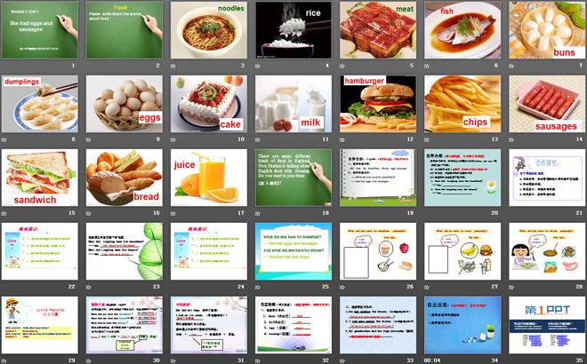 关键词:《She had eggs and sausages》教学课件,外研版三起点五年级下册英语课件,五年级英语幻灯片课件下载,《She had eggs and sausages》PPT课件下载,.ppt格式