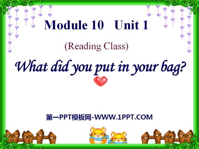 关键词:《What did you put in your bag?》教学课件,外研版一起点五年级下册英语课件,五年级英语幻灯片课件下载,《What did you put in your bag?》PPT课件下载,.ppt格式