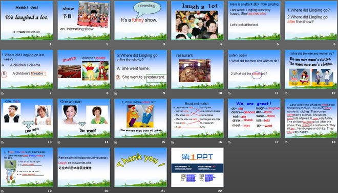 关键词:《We laughed a lot》教学课件,外研版一起点五年级下册英语课件,五年级英语幻灯片课件下载,《We laughed a lot》PPT课件下载,.ppt格式