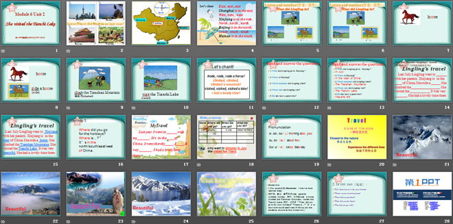 关键词:《She visited the Tianchi Lake》教学课件,外研版三起点五年级下册英语课件,五年级英语幻灯片课件下载,《She visited the Tianchi Lake》PPT课件下载,.ppt格式