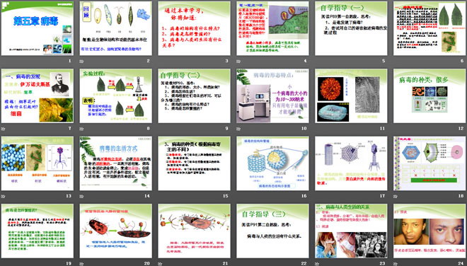关键词:病毒教学课件,人教版八年级上册生物PPT课件下载,八年级生物幻灯片课件下载,病毒PPT课件下载,.PPT格式;