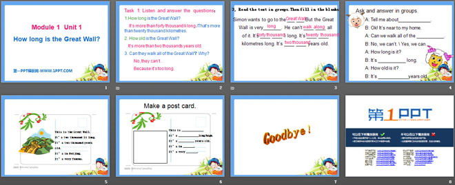 关键词:《How long is the Great Wall?》教学课件,外研版一起点六年级上册英语课件,六年级英语幻灯片课件下载,《How long is the Great Wall?》PPT课件下载,.ppt格式