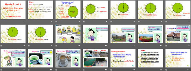 《What time does your school start?》PPT课件