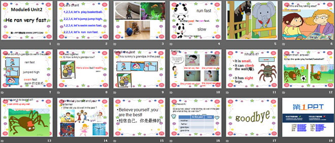 关键词:《He ran very fast》教学课件,外研版三起点五年级上册英语课件,五年级英语幻灯片课件下载,《He ran very fast》PPT课件下载,.ppt格式