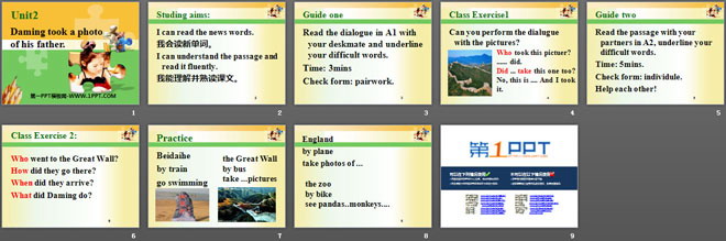 关键词:《Daming took a photo of his father》教学课件,外研版三起点五年级上册英语课件,五年级英语幻灯片课件下载,《Daming took a photo of his father》PPT课件下载,.ppt格式