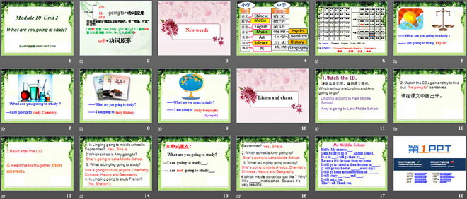 关键词:《What are you going to study?》教学课件,外研版三起点六年级下册英语课件,六年级英语幻灯片课件下载,《What are you going to study?》PPT课件下载,.ppt格式