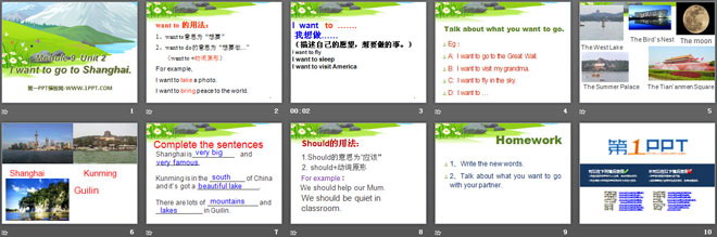 关键词:《I want to go to Shanghai》教学课件,外研版三起点六年级上册英语课件,六年级英语幻灯片课件下载,《I want to go to Shanghai》PPT课件下载,.ppt格式