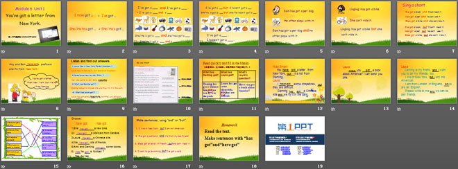 关键词:《You've got a letter from New York》教学课件,外研版三起点六年级上册英语课件,六年级英语幻灯片课件下载,《You've got a letter from New York》PPT课件下载,.ppt格式