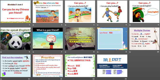 关键词:《Can you be my Chinese pen friend》教学课件,外研版三起点六年级上册英语课件,六年级英语幻灯片课件下载,《Can you be my Chinese pen friend》PPT课件下载,.ppt格式
