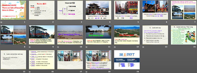关键词:《There are lots of beautiful lakes in China》教学课件,外研版三起点六年级上册英语课件,六年级英语幻灯片课件下载,《There are lots of beautiful lakes in China》PPT课件下载,.ppt格式
