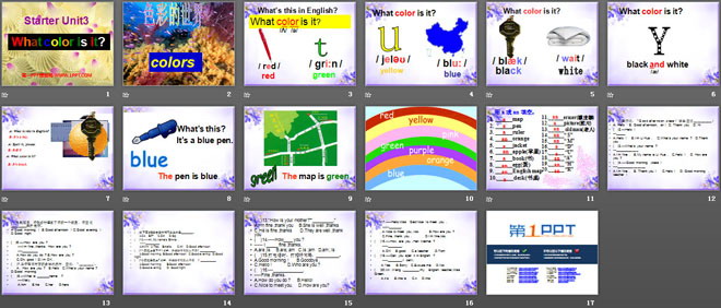 关键词:《What colour is it?》教学课件,外研版七年级上册英语课件,七年级英语幻灯片课件下载,《What colour is it?》PPT课件下载,.ppt格式