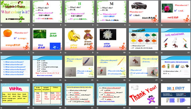 关键词:《What colour is it?》教学课件,外研版七年级上册英语课件,七年级英语幻灯片课件下载,《What colour is it?》PPT课件下载,.ppt格式