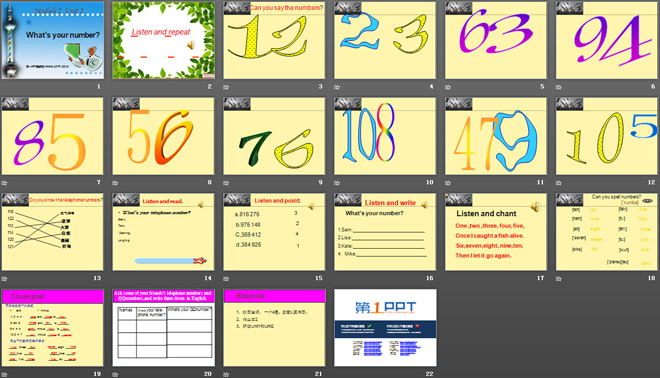关键词:《what's your number?》教学课件,外研版七年级上册英语课件,七年级英语幻灯片课件下载,《what's your number?》PPT课件下载,.ppt格式