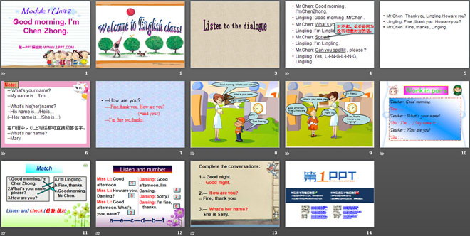 关键词:《Good morning.I'm Chen Zhong》教学课件,外研版七年级上册英语课件,七年级英语幻灯片课件下载,《Good morning.I'm Chen Zhong》PPT课件下载,.ppt格式