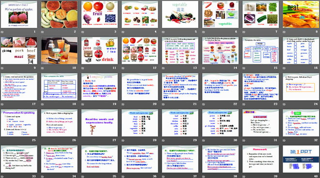 关键词:《We've got lots of apples》教学课件,外研版七年级上册英语课件,七年级英语幻灯片课件下载,《We've got lots of apples》PPT课件下载,.ppt格式