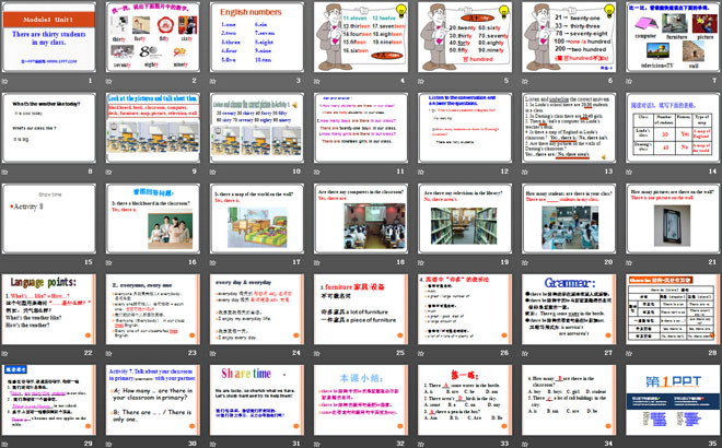 关键词:《There are thirty students in my class》教学课件,外研版七年级上册英语课件,七年级英语幻灯片课件下载,《There are thirty students in my class》PPT课件下载,.ppt格式