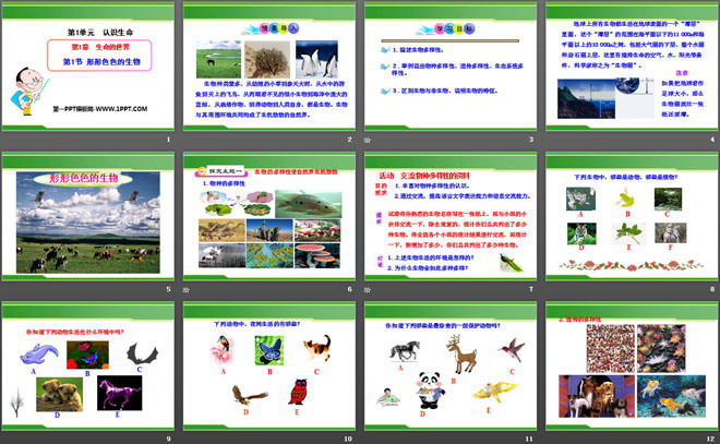关键词:北师大版七年级上册生物PPT课件免费下载,形形色色的生物PPT下载,.PPT格式;