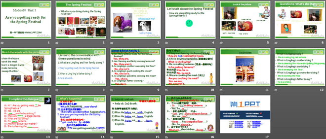 关键词:《Are you getting ready for Spring Festival》教学课件,外研版七年级上册英语课件,七年级英语幻灯片课件下载,《Are you getting ready for Spring Festival》PPT课件下载,.ppt格式