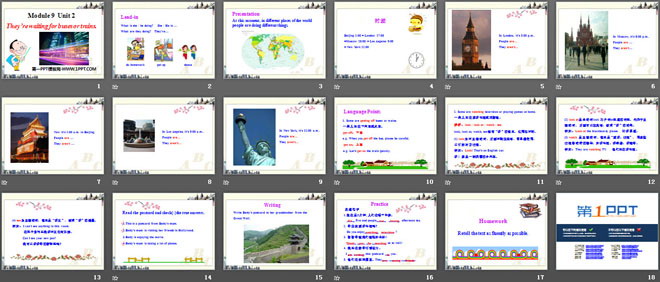 关键词:《They're waiting for buses or trains》教学课件,外研版七年级上册英语课件,七年级英语幻灯片课件下载,《They're waiting for buses or trains》PPT课件下载,.ppt格式